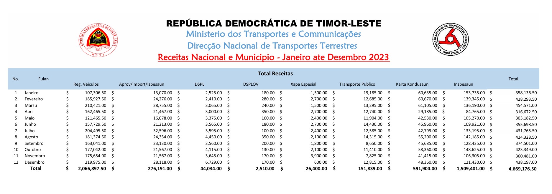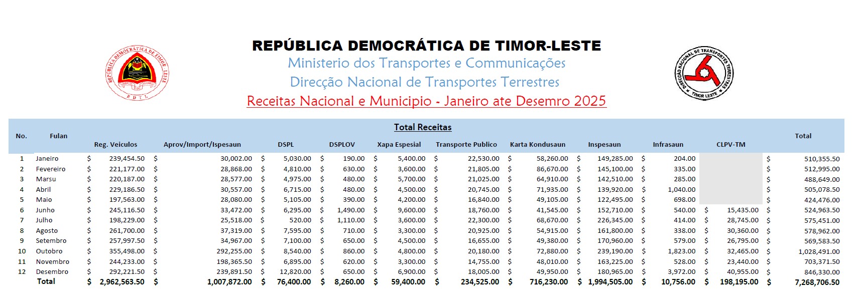 Autór direitu © 2025 Direção Nacional de Transportes Terrestres. Direitu reservadu.