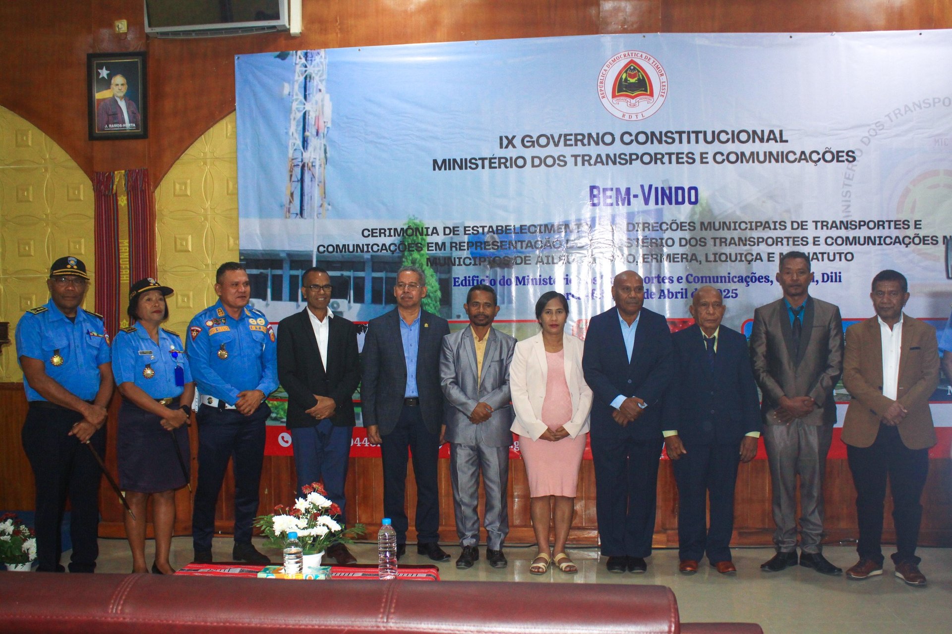 Dili, 29 Abríl 2025 – Ministério Transporte no Komunikasaun realiza Serimónia estabelesimentu Diresaun Munisipál Transporte no Komunikasaun iha munisípiu lima mak hanesan Aileu, Ainaro, Ermera, Liquiça no Manatuto.